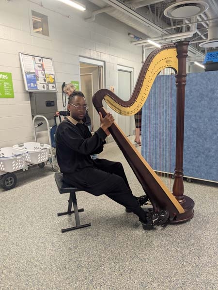 Ackeem Salmon was the featured artist. A harpist, composer, and interdisciplinary visual artist, Salmon’s work is influenced by people, places, and traditions around the world. Beginning with his childhood in Kingston, Jamaica, he has followed a winding path that has led to him finding a sense of home and purpose in Detroit.