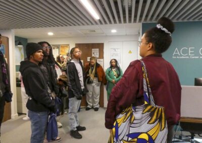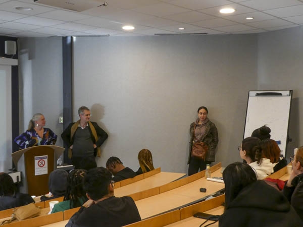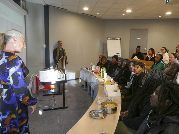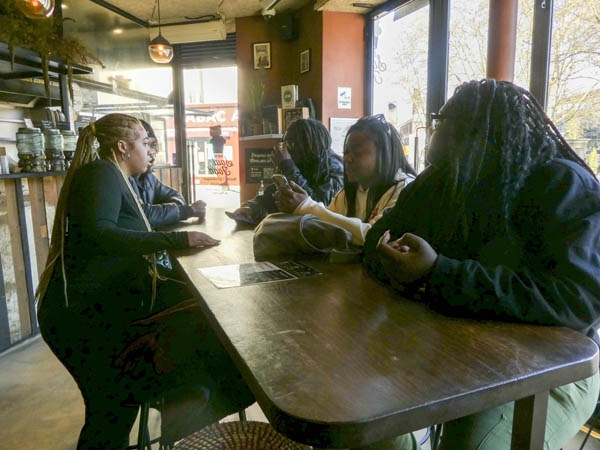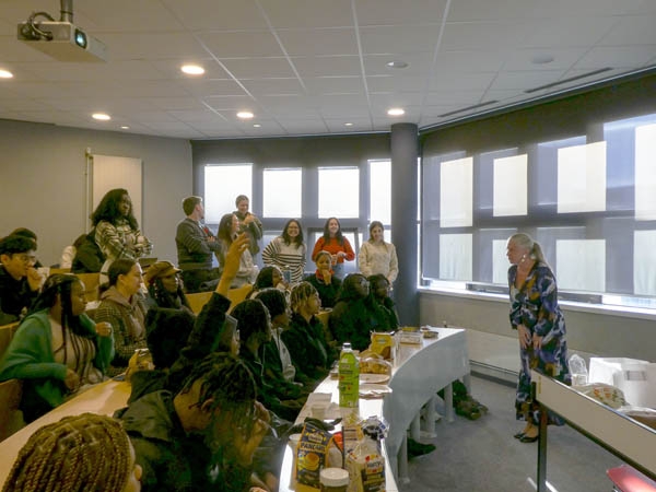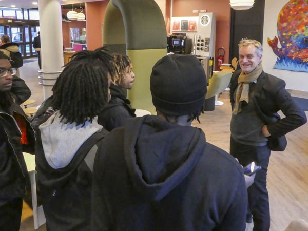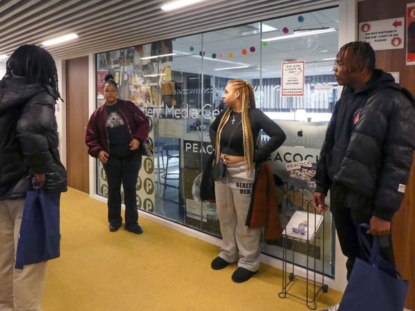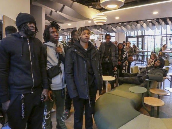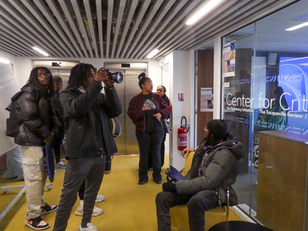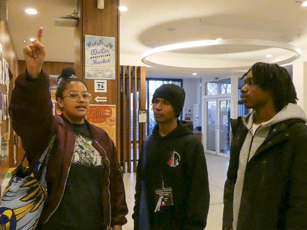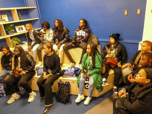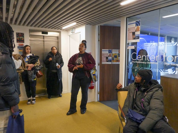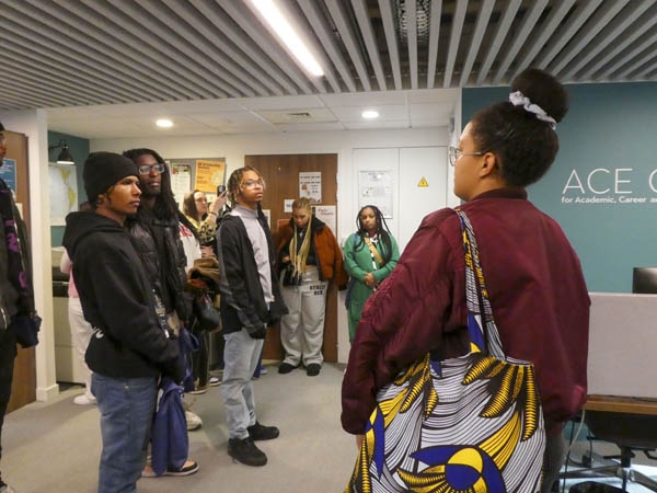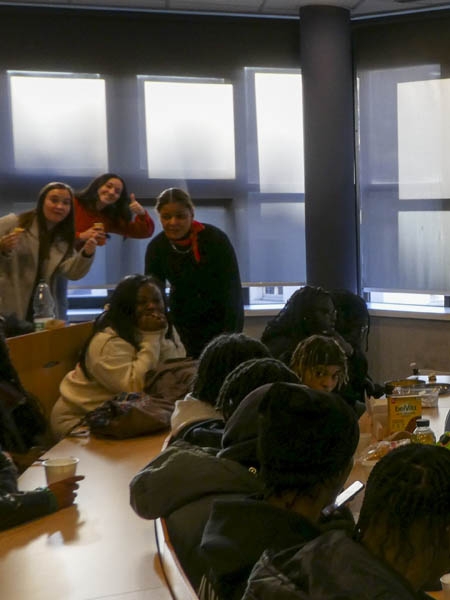 Blu Clara Rapps-O’Dea Valey, president of the student group Black and Abroad, then led the group on a campus tour and had lunch with the group afterward.