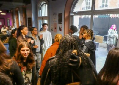 Prior to leaving the campus, YESPhilly students mingled with college students who participated in a pop-up vintage clothing sale hosted by ESAM Paris, the undergraduate management/finance/law university that shares the building with ABS.