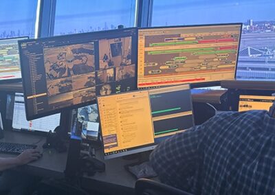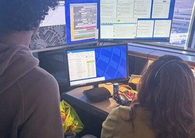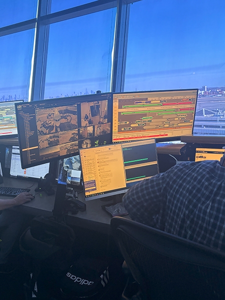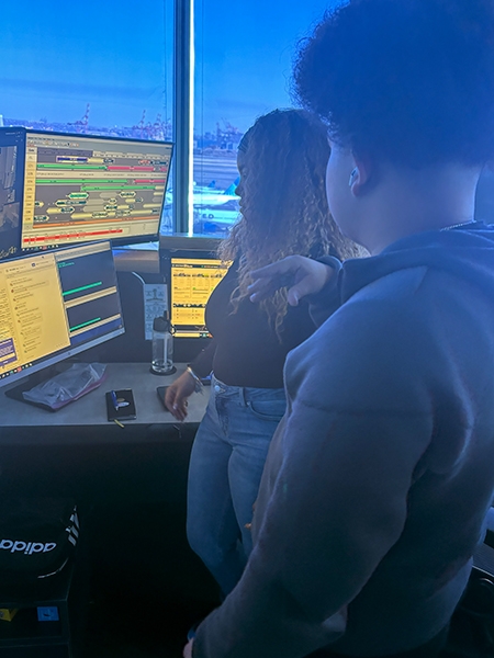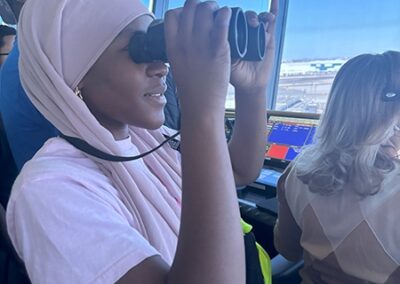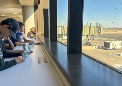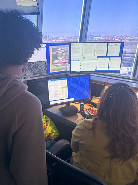 The students’ next stop was United’s Station Operation Center, which overlooks the airport’s airfield with a 360-degree panorama that includes a great view of New York City’s skyline.