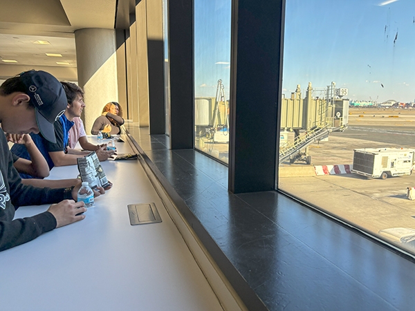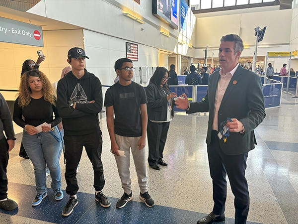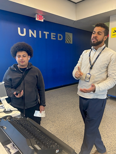 The group then passed through security, walked along one of United’s Terminal C concourses to get a good look at the planes, and gathered in a room where they could set their belongings, eat lunch and meet more United employees.